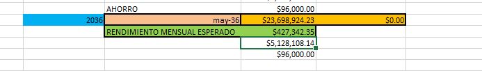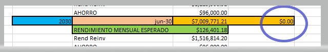 Adicionalmente coloqué una celda en donde puedes capturar aportaciones adicionales, para que puedas proyectar en cuanto tiempo recortas tu tiempo, si por ejemplo inviertes un bono, aguinaldo, venta de propiedad, etcétera.