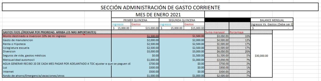 A esta primera sección la vamos a llamar SECCIÓN ADMINISTRACIÓN DE GASTO CORRIENTE, y se va a ver así;