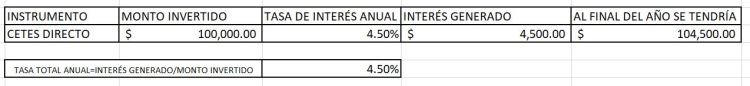 - Invertimos $70,000 en CETES a un rendimiento de 4.5% anual
