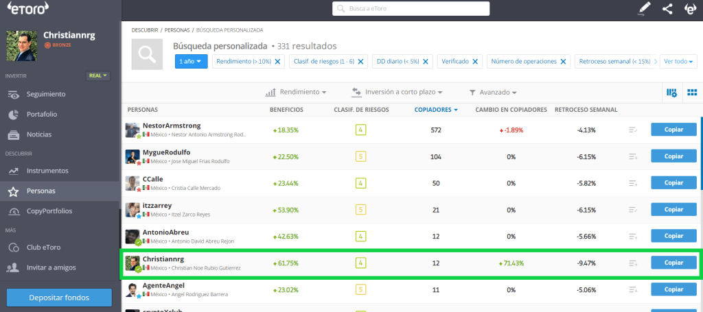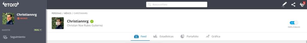 Mi nombre de usuario en ETORO es Christiannrg, como muchos lo saben, soy de México.