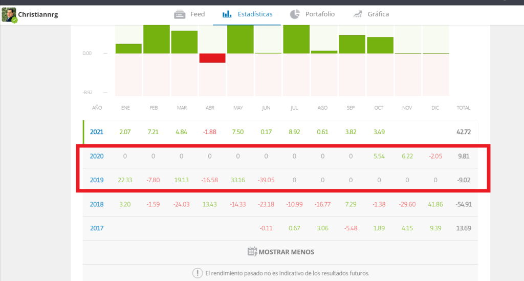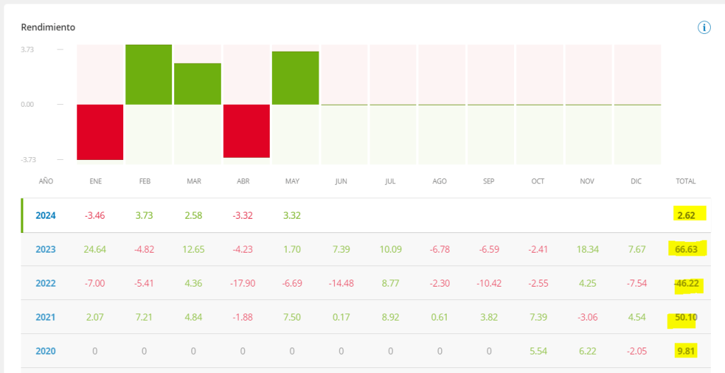 Dicho esto, la razón por la que se me hace super interesante esta función, es porque hay gente que tiene rendimientos de HASTA 70% anuales fruto de sus operaciones. Y un simple mortal, sin conocimiento ni experiencia, puede replicar dicho comportamiento.