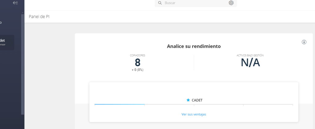 COPY TRADING.- Esta función a mi manera de ver es EXTRAORDINARIA, ya que te permite COPIAR las inversiones de otros inversionistas. Es decir, tu pones una parte de tu portafolio a copiar la actividad de «Juanito Perez», y ese dinero se invierte de manera proporcional en todos los activos que esta persona está invirtiendo. Abriendo y cerrando posiciones cuando él lo está haciendo y en tiempo real.